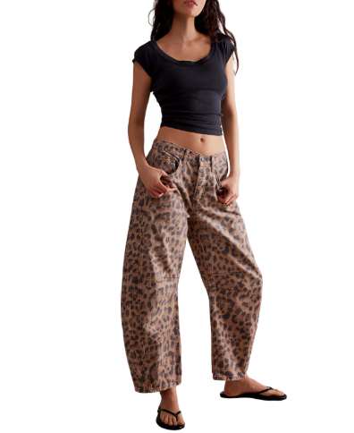 Free People's most-loved barrel jeans from our We The Free collection, now featured in a playful printed fabrication.