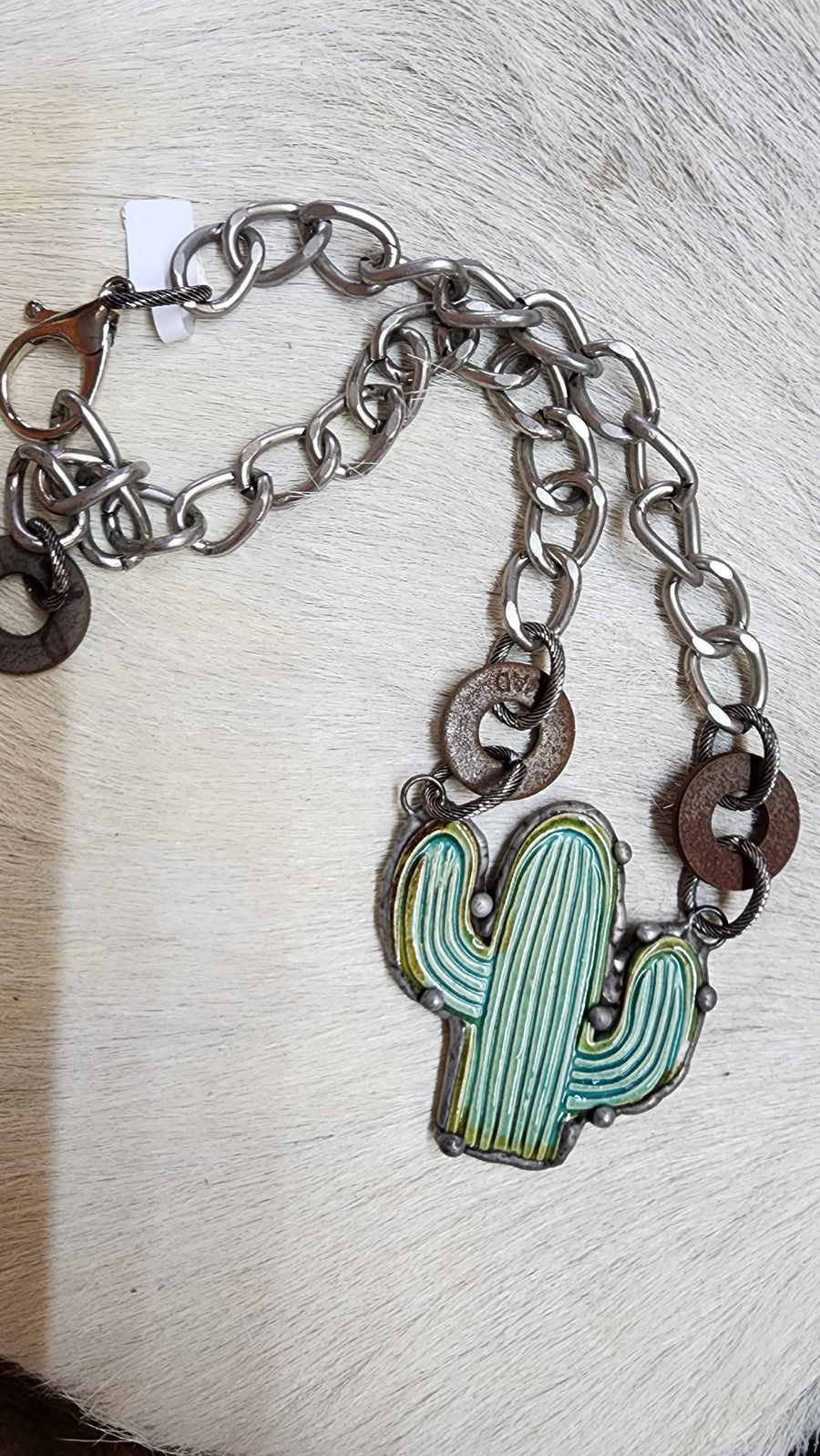 This stunning handcrafted cactus necklace is a 2 1/2" pendant on a 20" adjustable chain.