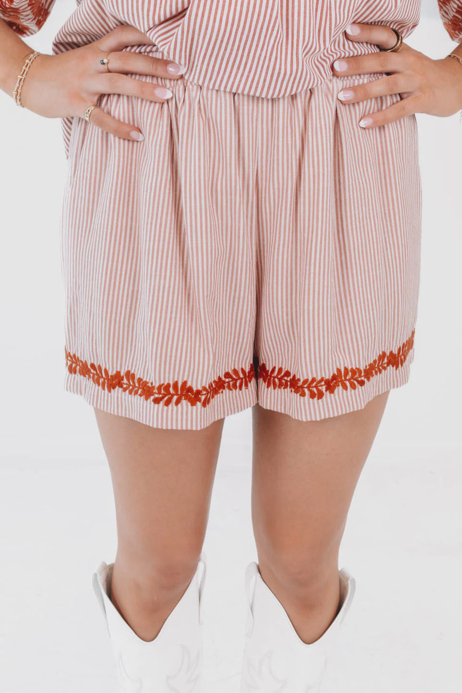 These playful shorts feature a vibrant embroidered floral trim. With convenient pockets and an adjustable waist, they offer both style and comfort. Perfect for going into fall, these shorts bring a fun, breezy vibe, making them a great choice for cooler weather and outdoor adventures. Pair with the Jess Top for an effortless look!