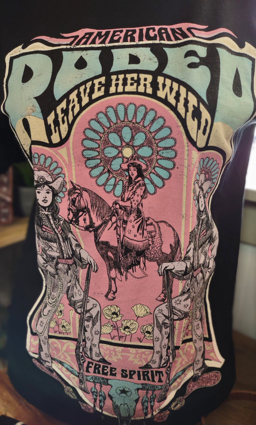This 100% cotton short sleeved t-shirt has bright colors and reminds you to Leave Her Wild.