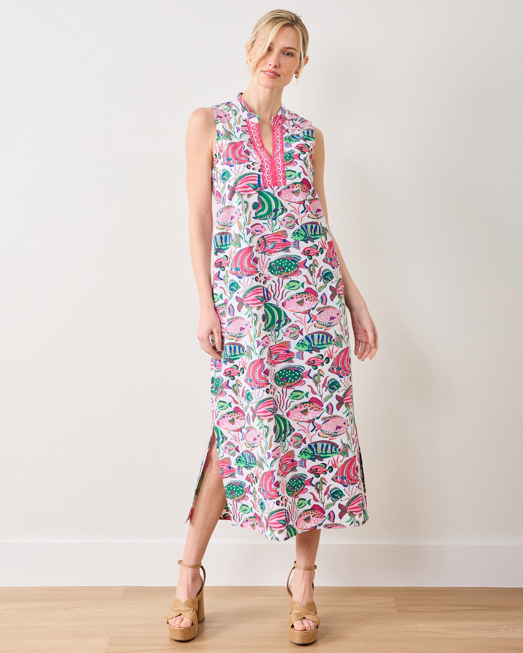 Dive into summer elegance with our OCEAN VIEW LONG DRESS featuring a captivating tropical fish pattern. Crafted from premium stretch poplin (98% cotton, 2% elastane), this dress offers both comfort and movement for all-day wear. The practical pockets add convenience without sacrificing style, while the unlined design ensures a lightweight feel perfect for warm weather occasions. Make a splash at your next event with this eye-catching, versatile piece.