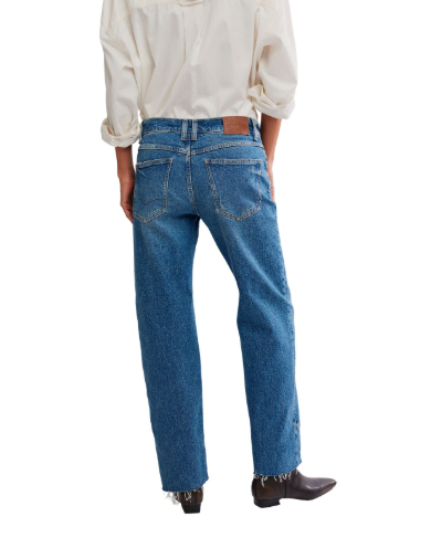 Fit: Mid-rise, true straight silhouette with semi-rigid denim