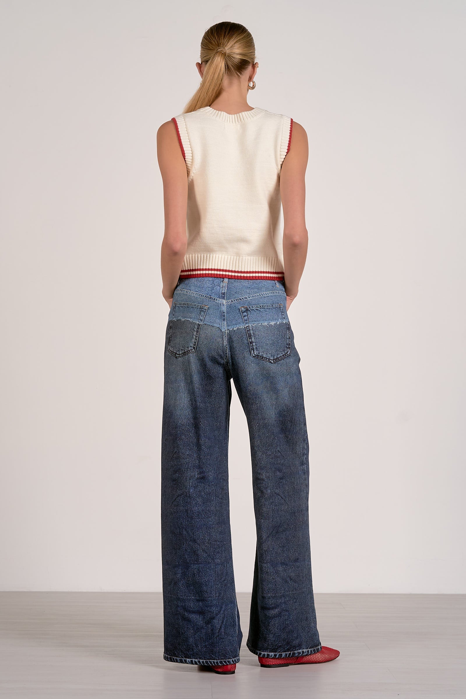 Sleeveless crewneck sweater in a rich pepper tone. Perfect for layering over tees or wearing solo during mild weather. The classic crew neckline and relaxed fit make it a versatile wardrobe staple that pairs effortlessly with jeans, skirts, or trousers.