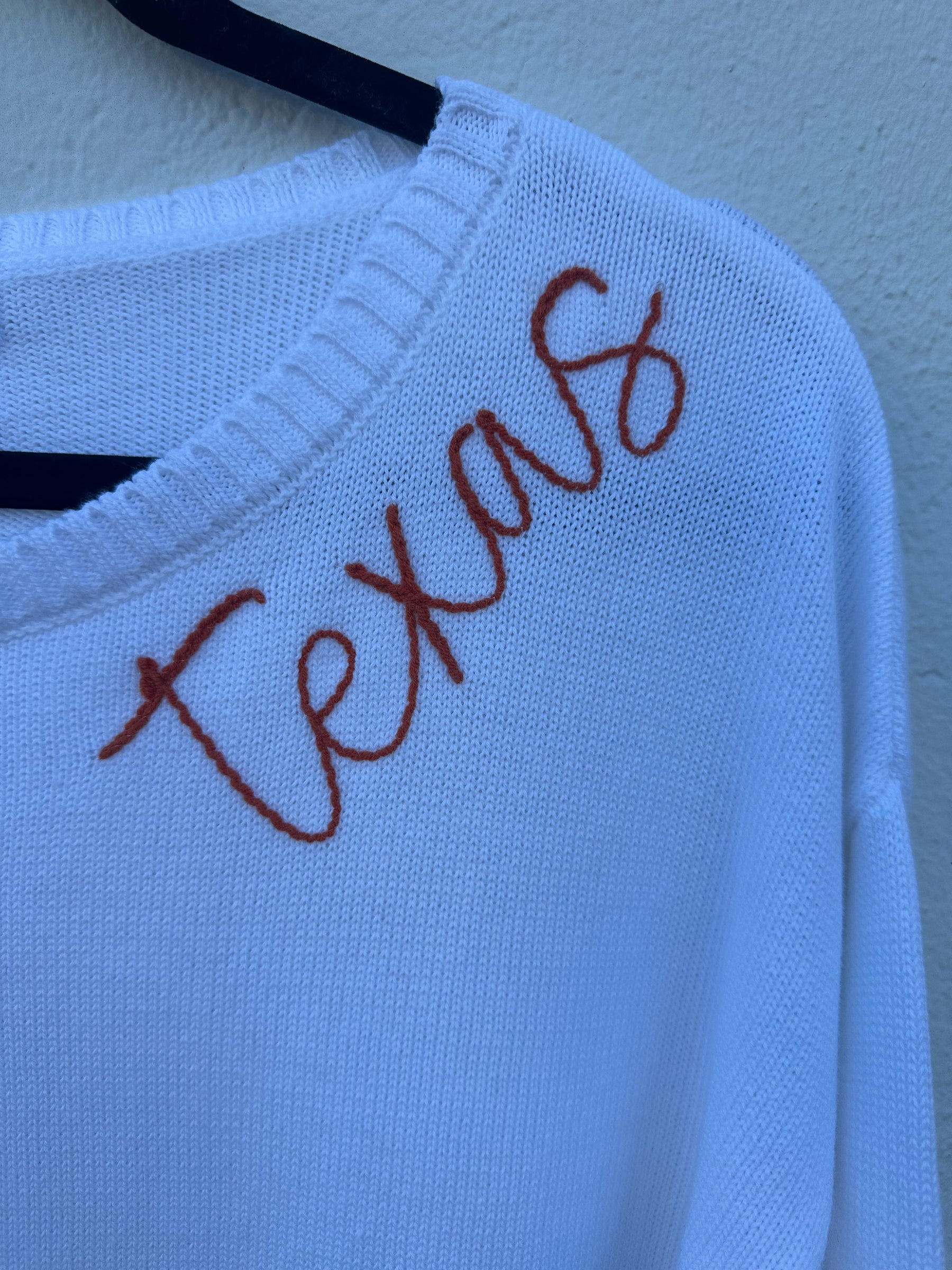Game day ready in this Texas Script sweater. Classic university styling with bold lettering celebrates your Longhorn pride. Perfect for tailgates, campus walks, or cheering from the stands. Comfortable fit keeps you cozy through every quarter.