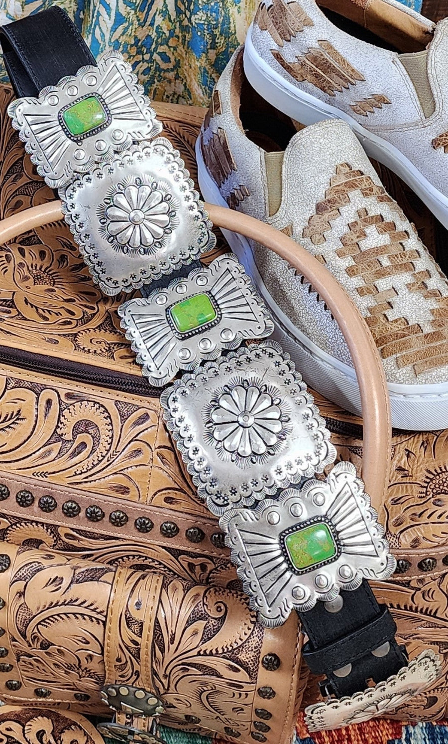 Beautiful Navajo Flat Concho Bead with Inlay Turquoise and Concho Earring Set
