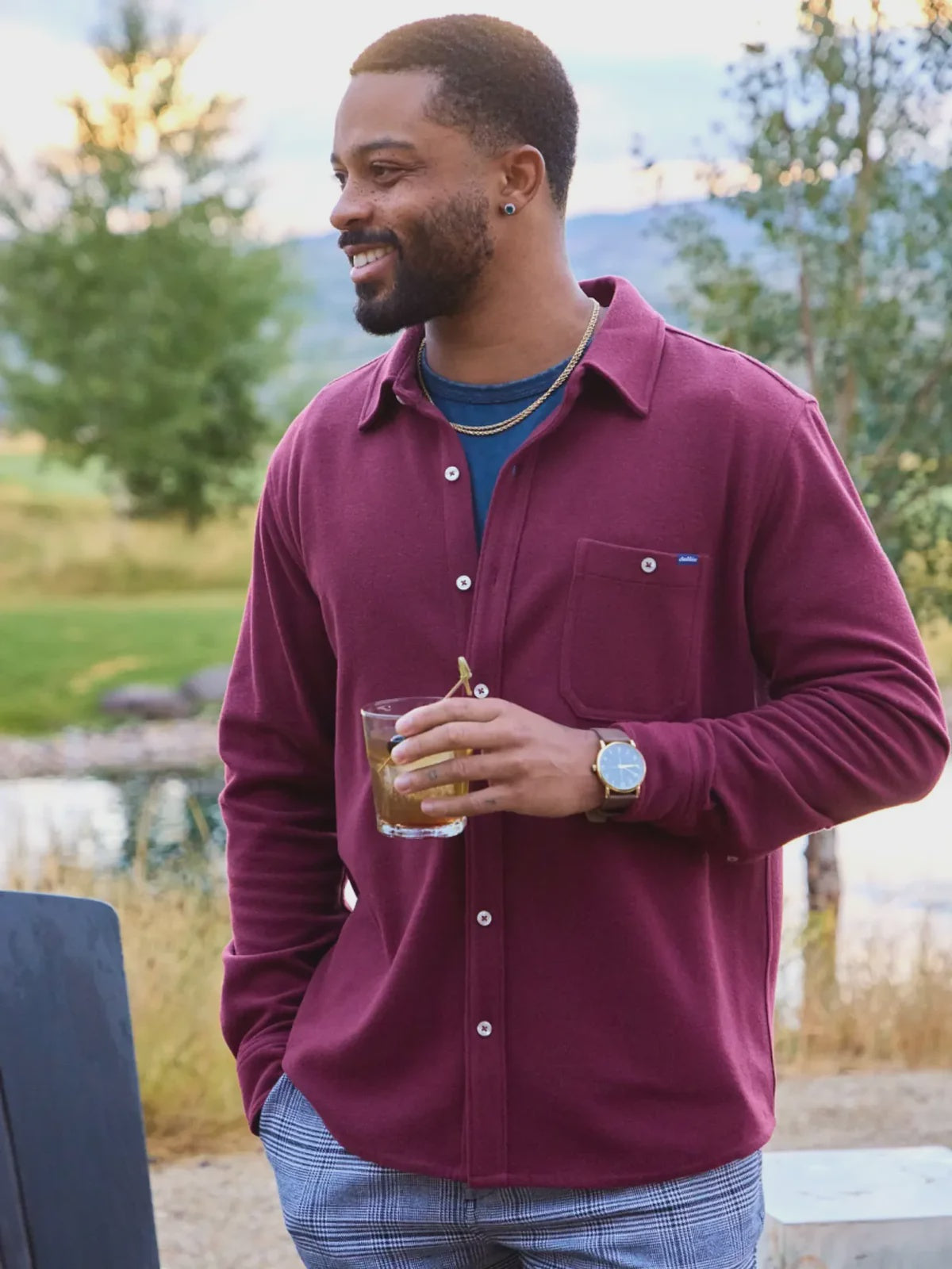 Your favorite flannel teamed up with your favorite cozy sweater to give you this elevated full button overshirt. The one-of-a-kind double knit fabric was designed to look like a flannel but provide a heavier, softer, fleece-like feel to keep you nice and snug. The relaxed feel makes it a perfect outer layer for transitioning from a leisurely football-filled Sunday to a chilly evening out on the town. Toss it over a tee or just wear it on its own. With the Cloud-10 Overshirt, the possibilities are endless.