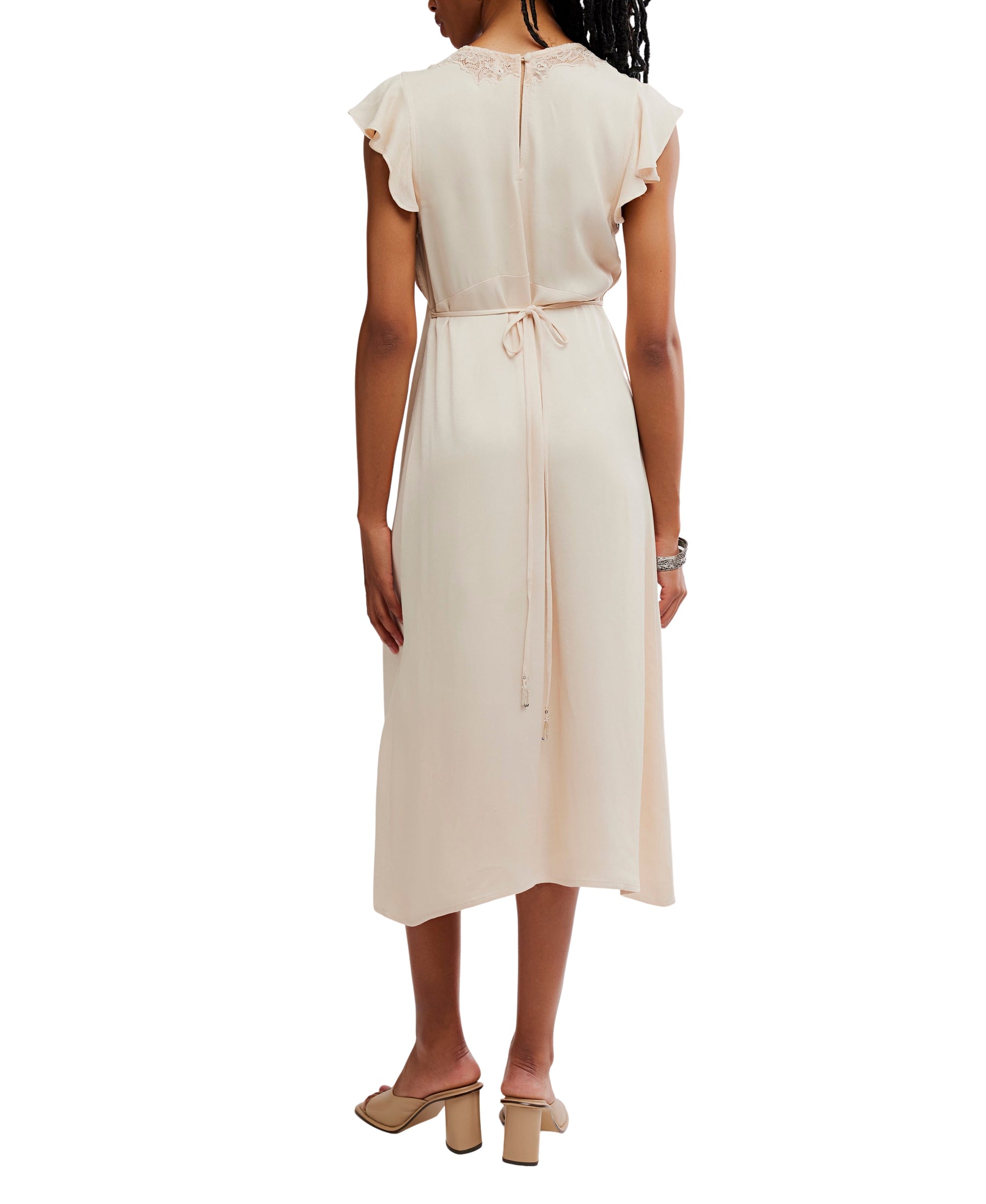 Effortless elegance meets comfort in this midi dress. The luxurious satin fabric drapes beautifully, creating a polished silhouette perfect for any occasion. Tied details add a playful touch while maintaining sophisticated style. Versatile enough for brunch, events, or elevated everyday wear.