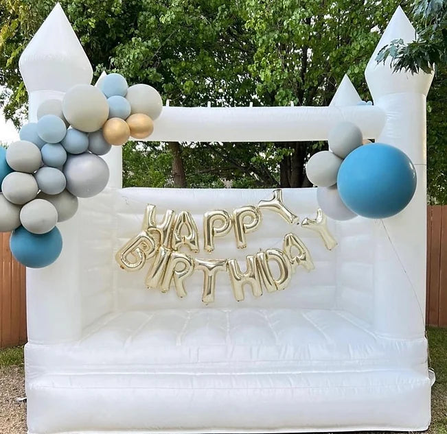 Elevated white Bounce Castle, perfect for weddings, parties, and corporate events!
