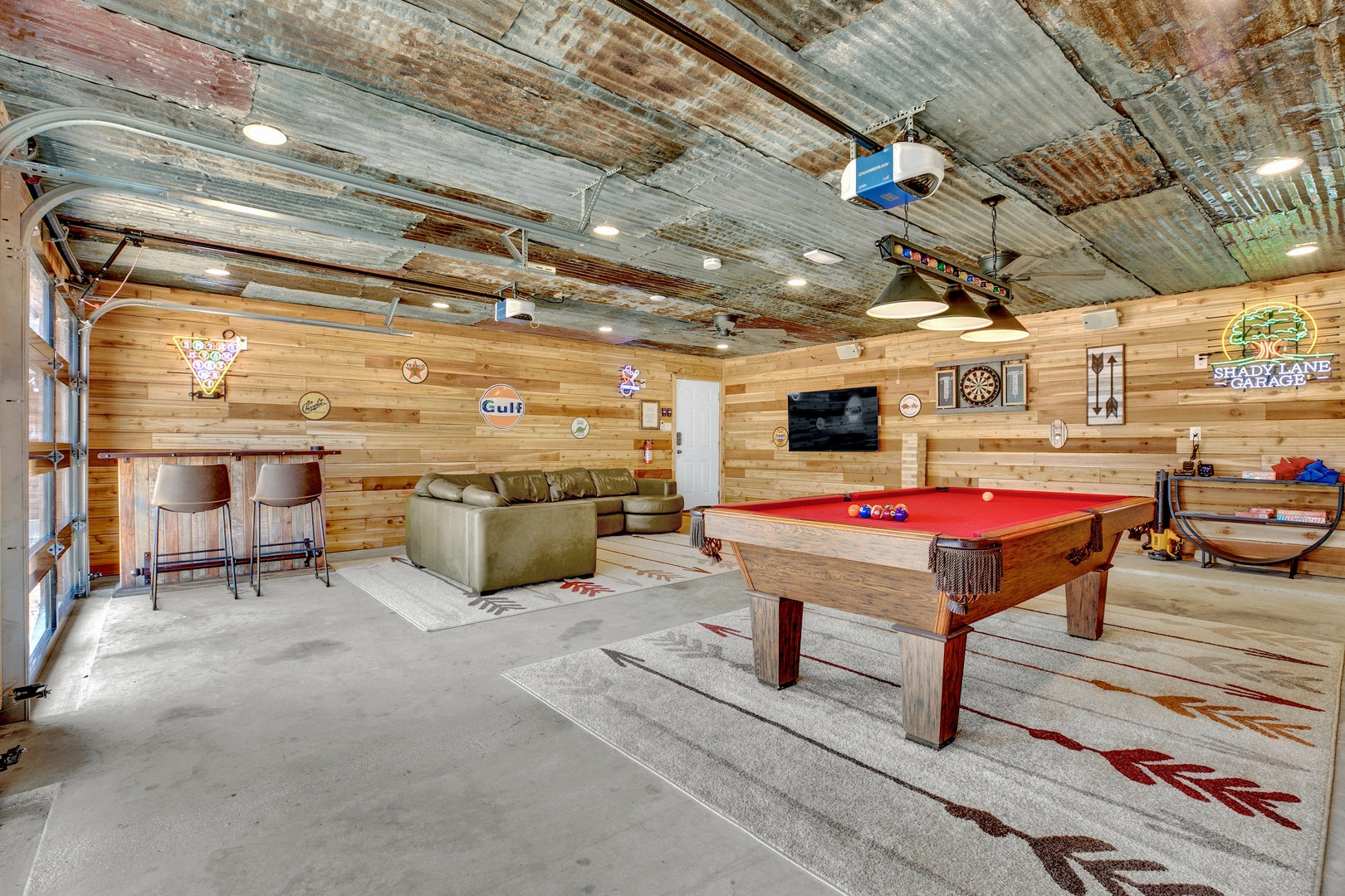 Escape to Shady Lane Lodge— a dazzling luxury log cabin sitting secluded on three acres in the heart of Texas Hill Country. With space for 16 spread out over 3500 exquisite square feet and a separate garage game room, Shady Lane Lodge has enough space for the whole family. Plus, it's wheelchair accessible. Located just two miles from town, you'll enjoy the calm serenity of this remote-feeling location while still being close to the shopping, dining, and entertainment of bustling Main Street Fredericksburg.
