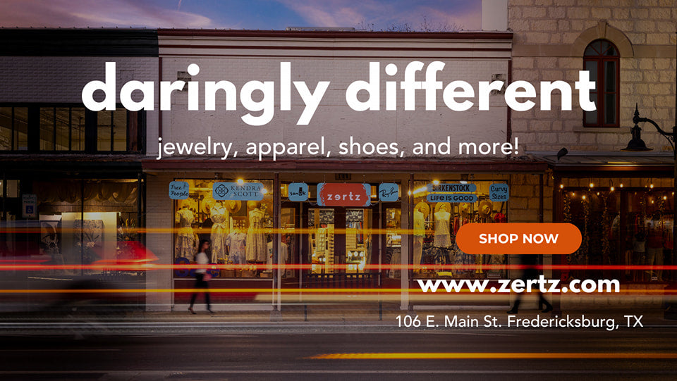 Zertz is a unique boutique in Fredericksburg, Texas, offering fashion, shoes, and accessories for all ages. The store carries hard-to-find brands such as Life is Good, Yellow Box, Sperry, Lucky Brand, Birkenstock, Ray-Ban, Kendra Scott, Free People, Z Supply, Alex and Ani, PJ Salvage, and more. With plus sizes, men’s shoes, and stylish apparel, Zertz ensures there’s something for everyone in a fun, fashion-forward shopping experience.