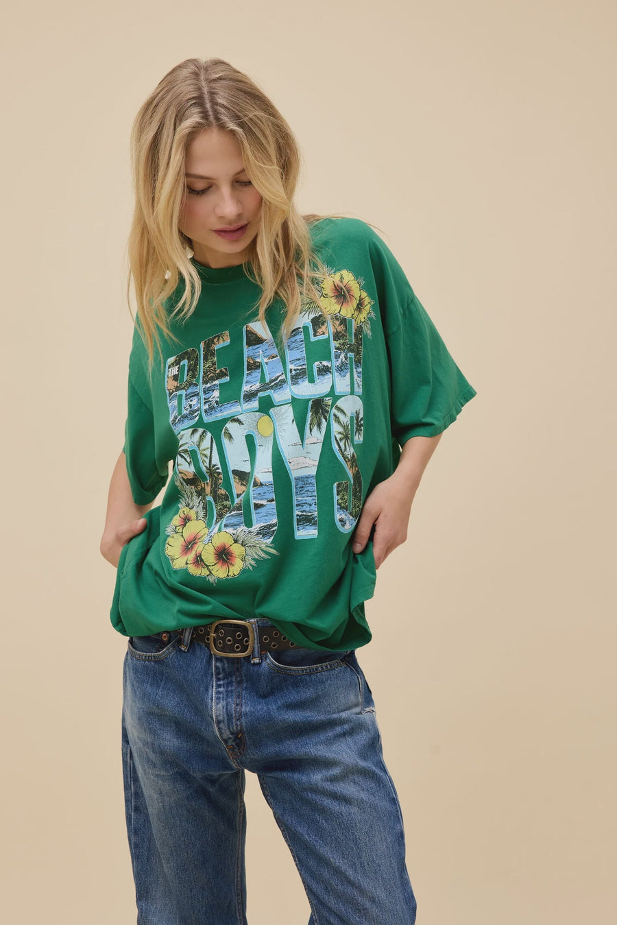 Lean into the laidback lifestyle in this tropical tee stamped with 'The Beach Boys' in ocean cut-out letters. A signpost to follow the Golden State's sound.