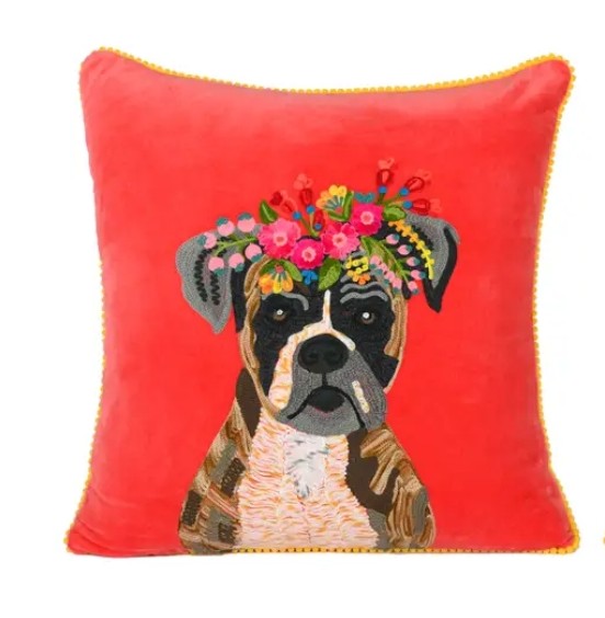Having this sweet embroidered pillow looking back at you will make you smile. This pillow measures 17"x17".