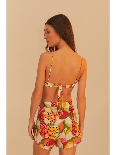 Experience a tropical paradise with Farm Rio's Fruits Paradise Shorts! These tie shorts feature a fun and playful fruit pattern, perfect for adding a pop of color to your summer wardrobe. Embrace the warm vibes and feel rejuvenated with every wear.