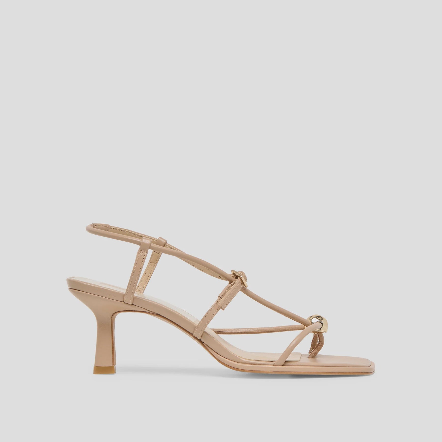 Understated, strappy, and goes with everything. MYLEE’s architectural heel and minimalist hardware add a cool modern touch to dresses and matching sets.