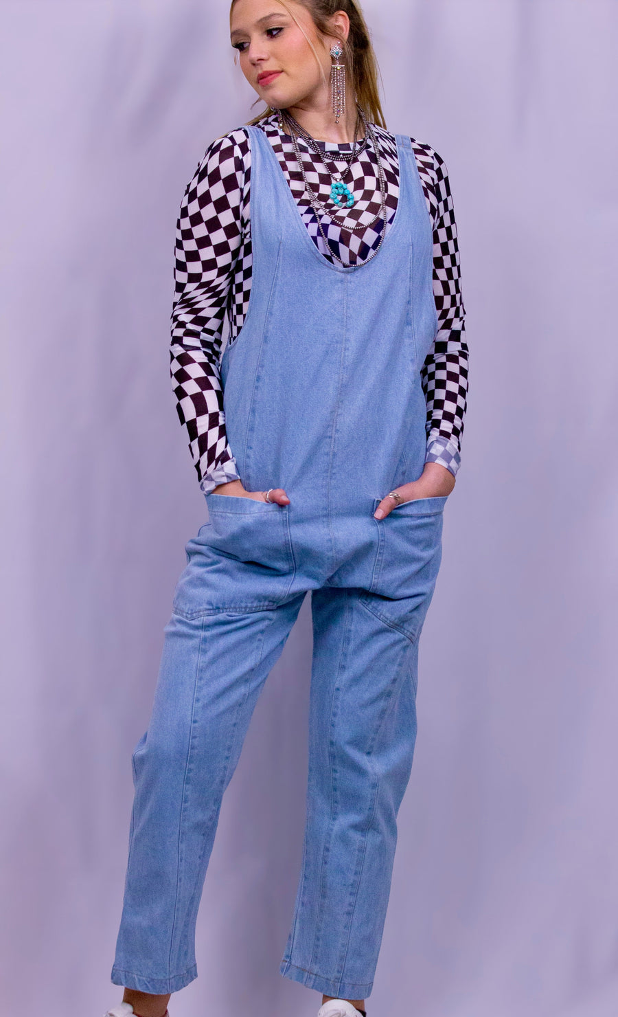 a more polished ensemble. The Washed Denim Overall Jumpsuit is a